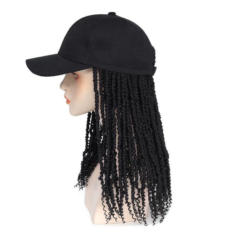 - 1. Specification and Material: Baseball Hat with passion twist hair is made of 14inch high quality Pre-twisted bomb twists synthetic fiber and Cotton Baseball Cap. The cap is breathable. The braids is sewed well in the hat by professional workers. The hair is super soft.