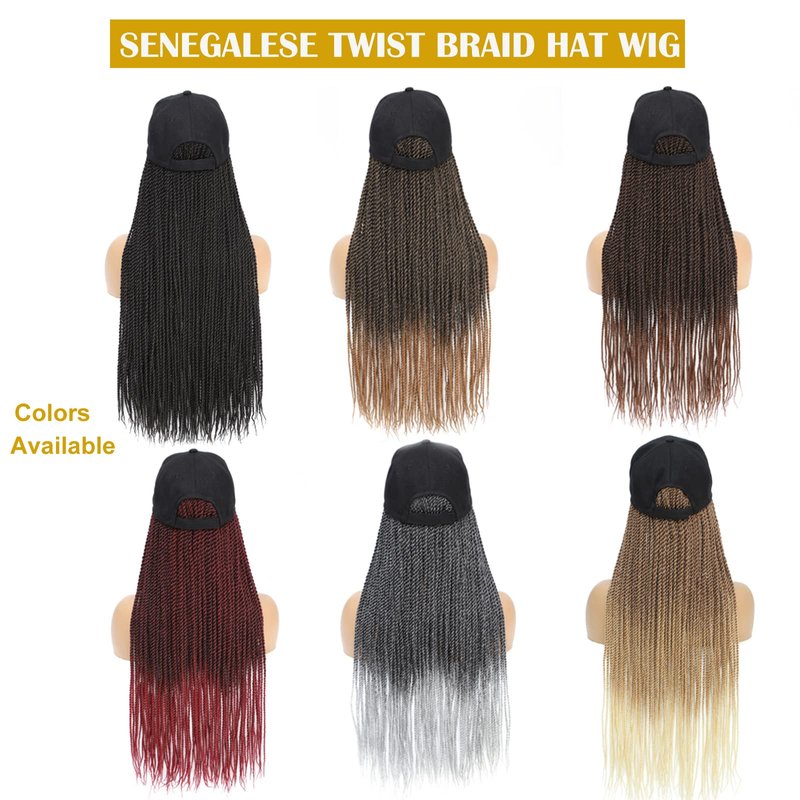 AliRobam Hat Wigs Baseball Cap with Senegalese Twist Braids Hair extensions Hat With Braided Hair attached for Black White woman (24inch, T30)