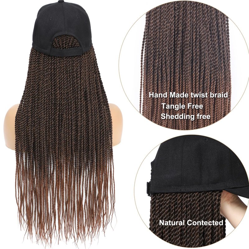 Material: High quality twisted synthetic braiding hair, well sewed baseball cap. Handmade by Professional Workers. tangle-free, shedding free,No Smell, Natural & stylish looking. Not easy to unravel & fuzzy. Wig Features: