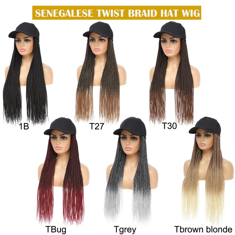 AliRobam Hat Wigs Baseball Cap with Senegalese Twist Braids Hair extensions Hat With Braided Hair attached for Black White woman (24inch, TBug)