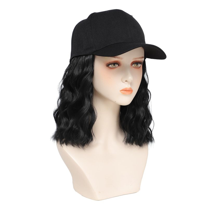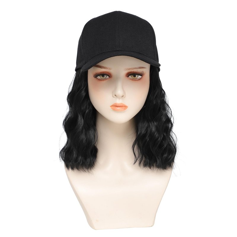 Hat With Hair ,bob wigs, hats with Natural Wave Hair Extensions attached for women, Easy Wear hair style, especially suitable for a bad hair day/lazy days