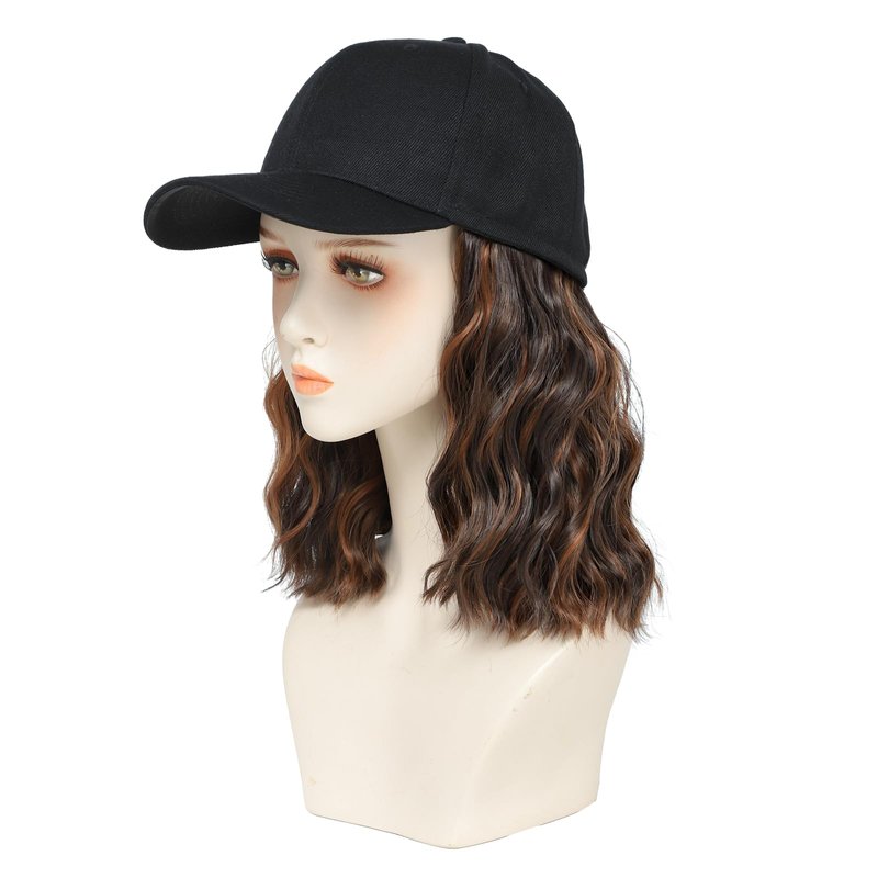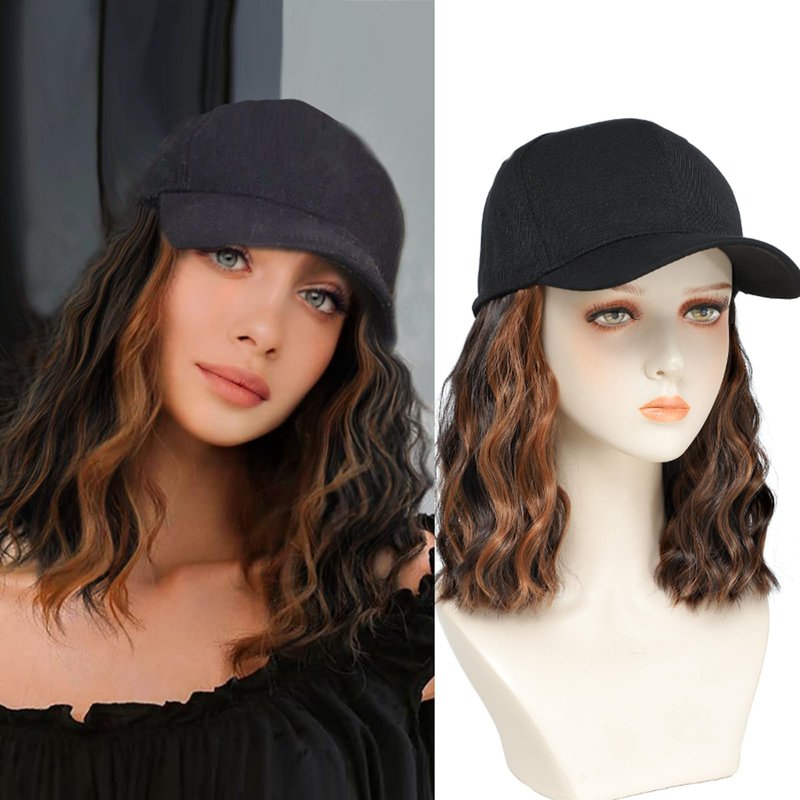 Hat With Hair ,bob wigs, hats with Natural Wave Hair Extensions attached for women, Easy Wear hair style, especially suitable for a bad hair day/lazy days