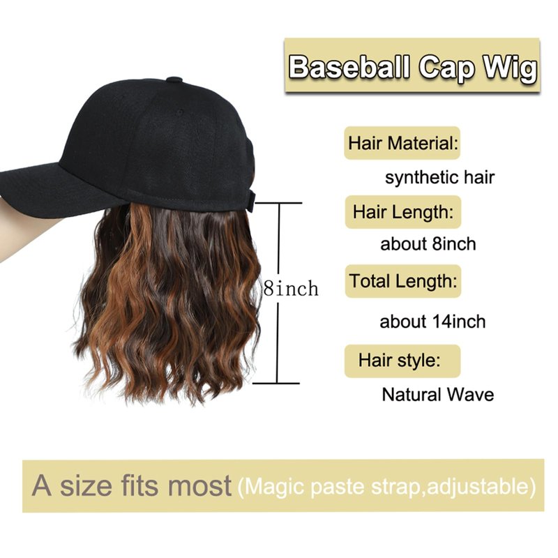 - 2. Adjustable Size Fits Most: Adjustable Strap With Magic Paste, One Size fits Most Head Sizes. The wig is very easy to wear. You just need to tie up your own hair, put the wig on your head, and the adjustable Velcro makes the baseball cap to custom fit your head. A beautiful hairstyle is done within seconds. Wig with hat is more comfortable than full wigs.