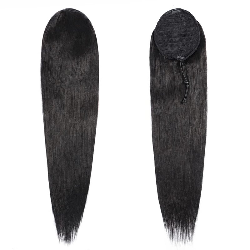 Alisfeel Straight Human Hair Ponytail Extension Remy Brazilian Drawstring Ponytail Human Hair for Black Women 10A Grade Clip In Pony Tail Hairpiece 120g Natural Color (20 Inch)