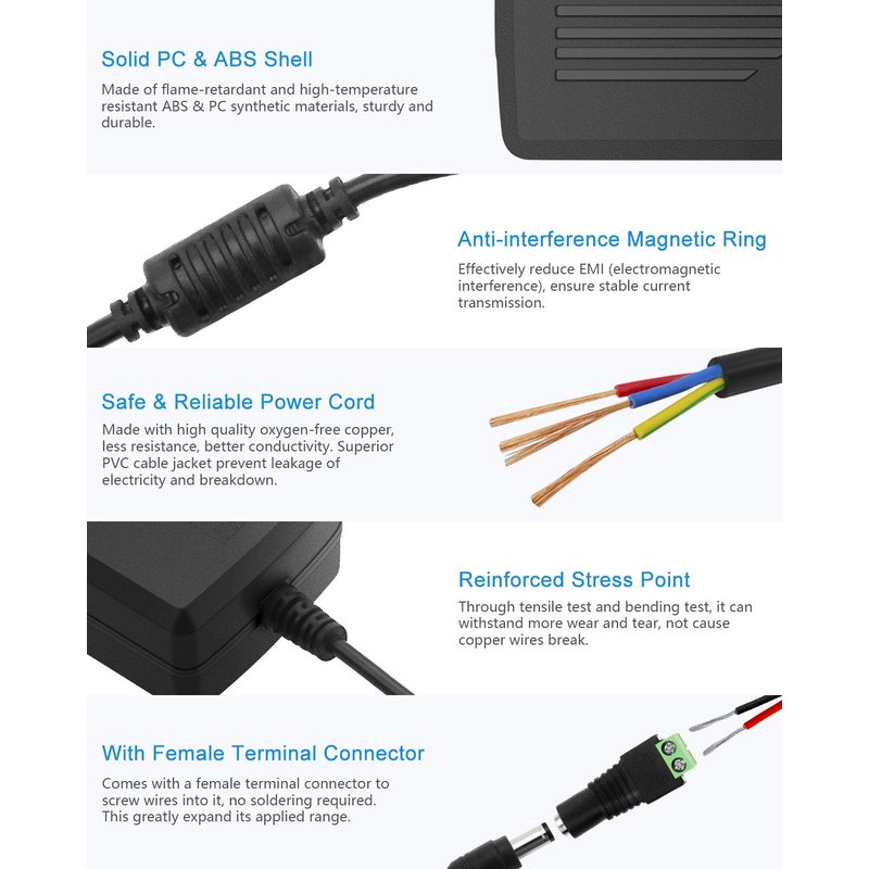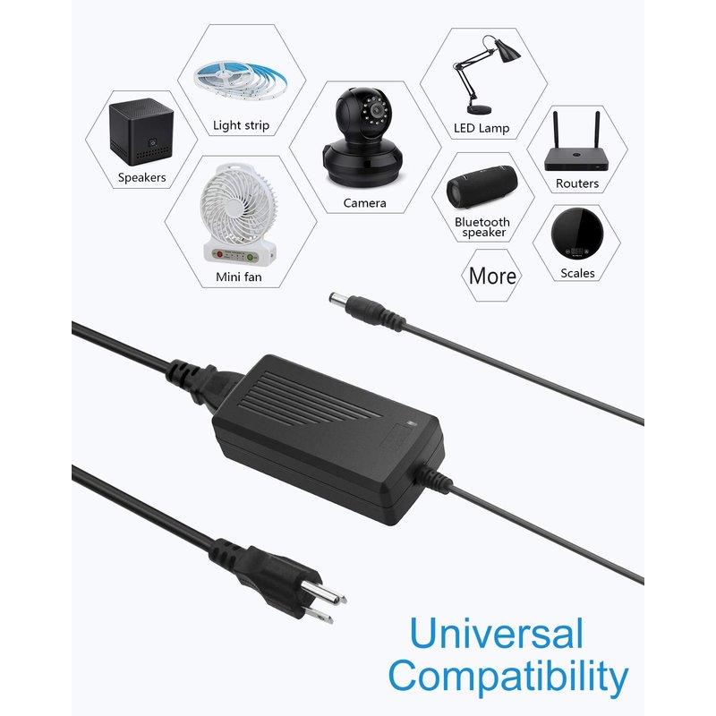 - Great for LED Strips, 3D Printer, ham radio transceiver, CCTV cameras,car subwoofer amp, audio amplifier, wireless router, ADSL Cats, HUB, audio/ video power supply. Indoor use only!