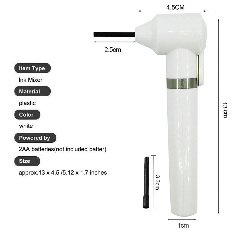 - 5.POWER - Our tattoo pigment mixer machine 2 AA 1.5V batteries are need. (not included in the package).And there is a strip bar control button on the head of machine. Single button easy operation.Lightweight and portable, small size for easy carry, convenient and practical to use.