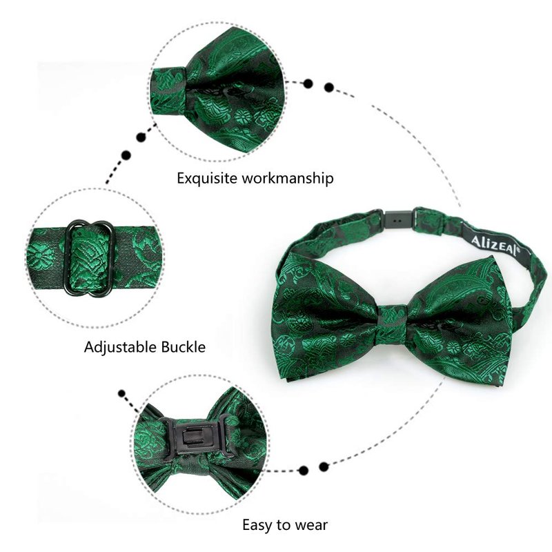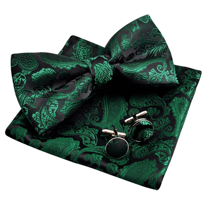 Alizeal Mens Paisley Bow Tie, Pocket Square, Cufflinks Set (Dark Green)