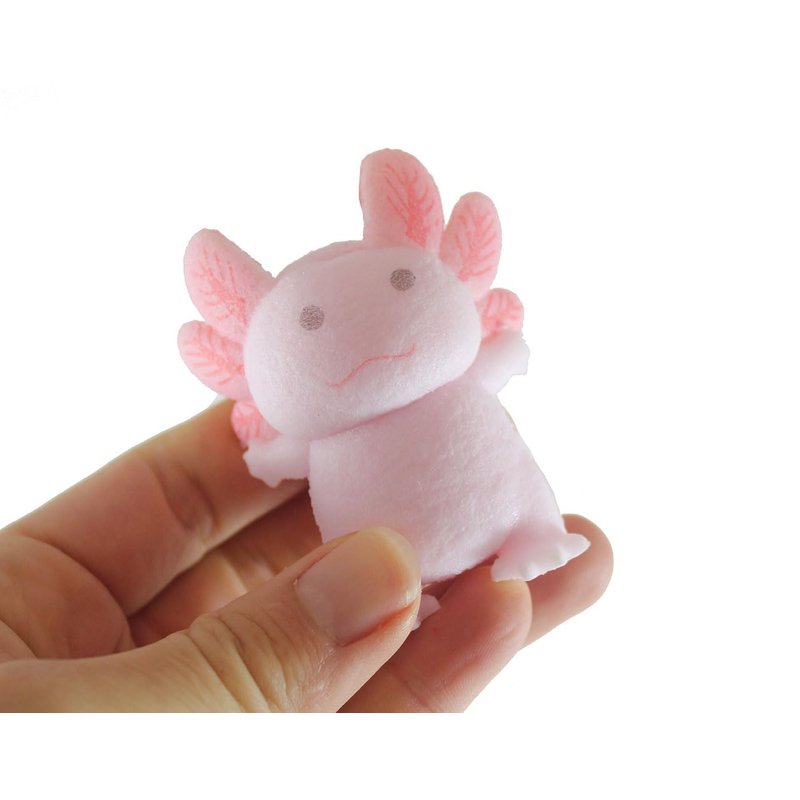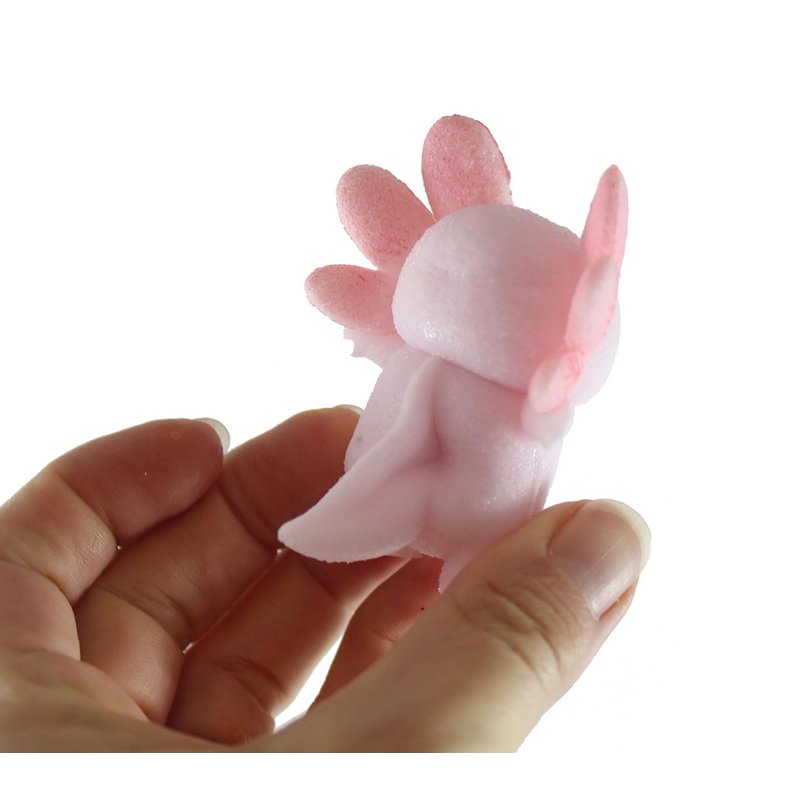 - This axolotl is one of those grow pets that slowly expand and grow after being submerged with water. Place the 2.25" x 1.75" egg in water and the creature will slowly grow up larger and hatch out of the egg into an axolotl. Full grown axolotl measures about 4" x 2" x 2".