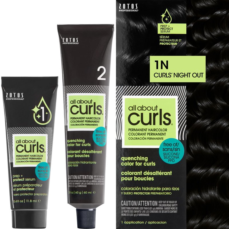 All About Curls 1N Curls Night Out Permanent Hair Color (Prep + Protect Serum & Hair Dye for Curly Hair) - 100% Grey Coverage, Nourished & Radiant Curls
