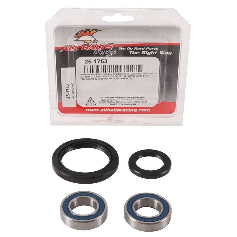 All Balls Racing 25-1753 Wheel Bearing Kit Front Compatible With/Replacement For Suzuki DR-Z 400 2000-2003, DRZ400SM, DRZ400S 2017, DR-Z 400 SM 2005-2016, DR-Z 400 S 2000-2016, DR-Z 400 E 2000-2007