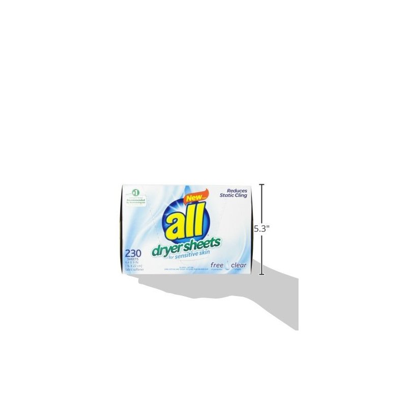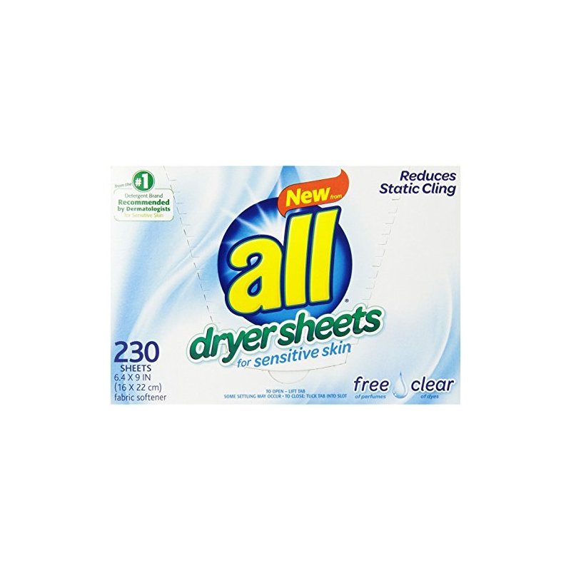 all Fabric Softener Dryer Sheets for Sensitive Skin, Free Clear, 230 Count