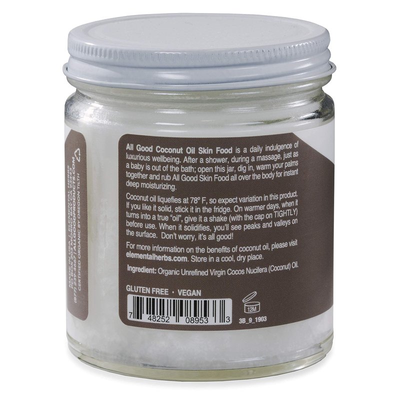 - DEEP MOISTURE - Your skin will love the deep moisturizing power of coconut oil. Simple and luxurious indulgence for the skin leaves it moisturized and glowing. After a shower, during a massage, or just as a baby is out of the bath; open this jar, dig in, warm your palms together and rub All Good Skin Food all over the body for instant deep moisturizing.