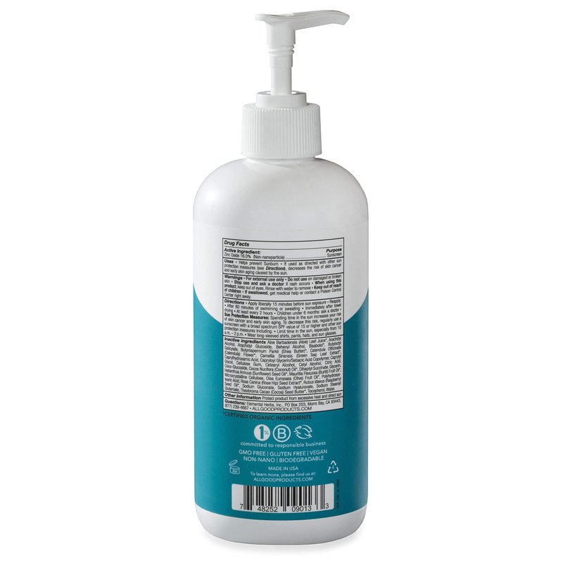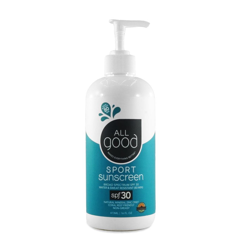 All Good Sport Mineral Sunscreen Lotion - Coral Reef Friendly, Water & Sweat Resistant, Face & Body, UVA/UVB Broad Spectrum SPF 30+ (16 oz Pump)