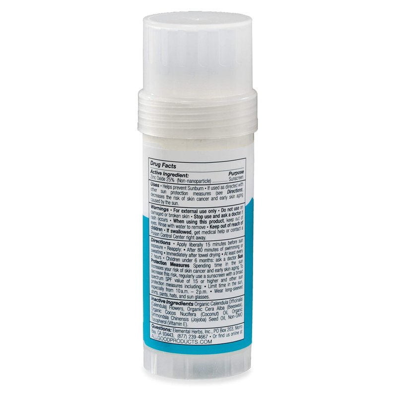 Active Ingredient: Zinc Oxide 25% (Non-nanoparticle) Inactive Ingredients: Organic Cocos Nucifera (Coconut) Oil, Organic Cera Alba (Beeswax), Organic Calendula Officinalis (Calendula) Flowers infused in Organic Simmondsia Chinensis (Jojoba) Seed Oil, Non-GMO Tocopherol (Vitamin E).