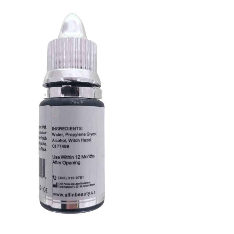 All in Beauty black tattoo ink for Micropigmentation of Eyebrows and Eyeliner does not change color to gray or blue and stays black after healing. The black color is very stable since the main active ingredient is carbon black. Our eyeliner ink with liquid formula helps make implantation easier, plus it does not change its color and is very stable. For eyebrow micropigmentation due to its texture it helps to make better blends that look more natural and better pixels. It is considered mixed or dual as it has the vivid colors of organic pigments as well as the durability and stability of inorganic pigments. Organic and inorganic long lasting tattoo ink black for permanent eyeliner. This microblading ink works perfectly with all microblading tools as well as working with eyebrow micropigmentation machines. Recommended only for use by professionals and professional specialists with correct mastery of the technique. Vegan black tattoo ink big bottle and we never tested on animals. If you work correctly, the retention will be long-lasting