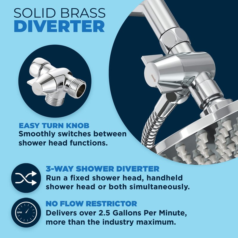 - Get the BEST OF BOTH WORLDS by installing fixed and handheld shower heads in one. Divert the water to each shower head or RUN BOTH SHOWERHEADS AT THE SAME TIME by rotating a COMFORTABLE KNOB.