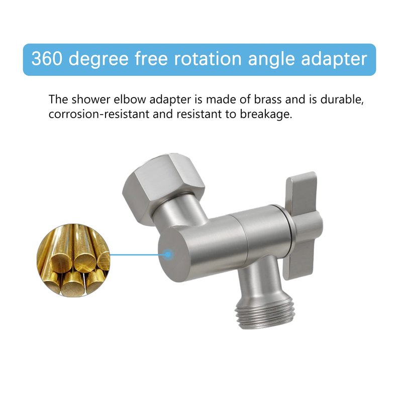 This is a great adjustable elbow adapter, made of all-solid brass, rugged and durable, no rust, no leakage, Does not restrict water flow, 2 colors can be selected, perfectly match your existing bathroom style, 360 degree angle adapter for easy adjustment of shower angle and height. It allows you to enjoy a wonderful shower from any angle you like.