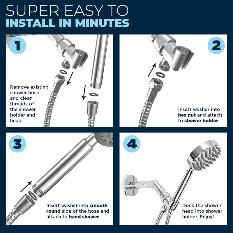 - EASILY INSTALLS IN MINUTES – Complete shower hose extension kit includes everything you need: a 72” metal shower hose, preinstalled rubber washers, and DIY-FRIENDLY instructions. Screw it on, and you’re good to go!