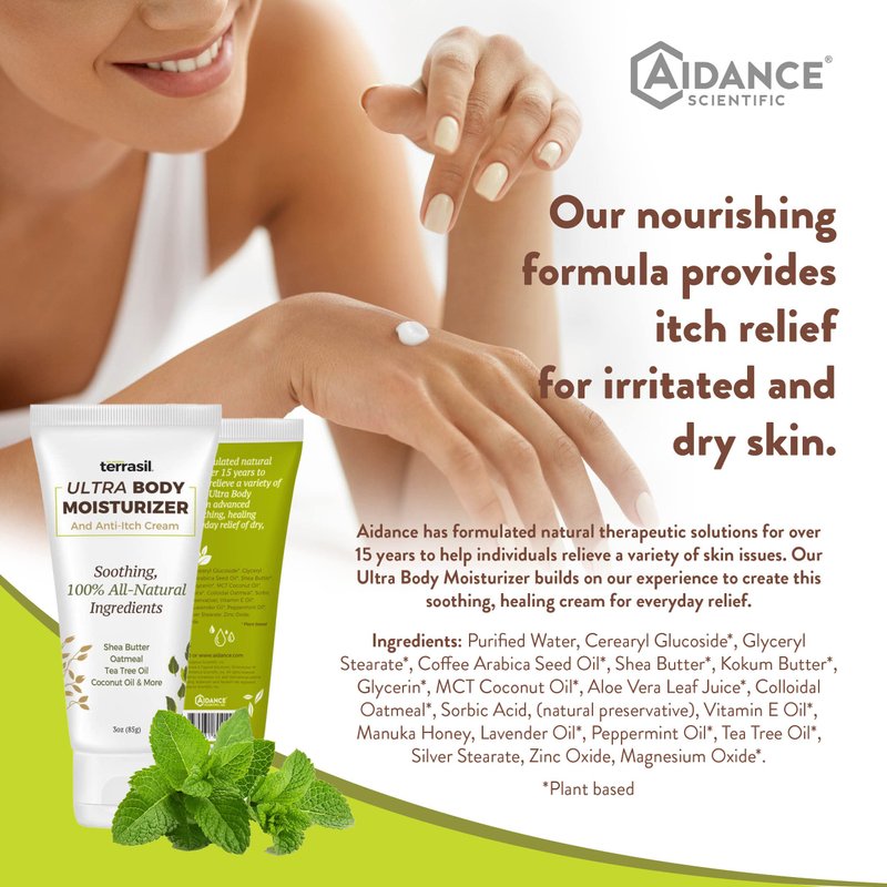 All Natural Dry Skin Body Lotion for Women, Moisturizer Cream by Terrasil | Shea Butter, Tea Tree, Lavender, Peppermint, Coconut Oil, Oatmeal, Vitamin E | Anti Itch | 3 oz (85g) Tube
