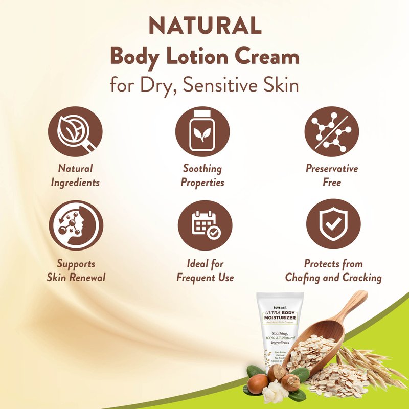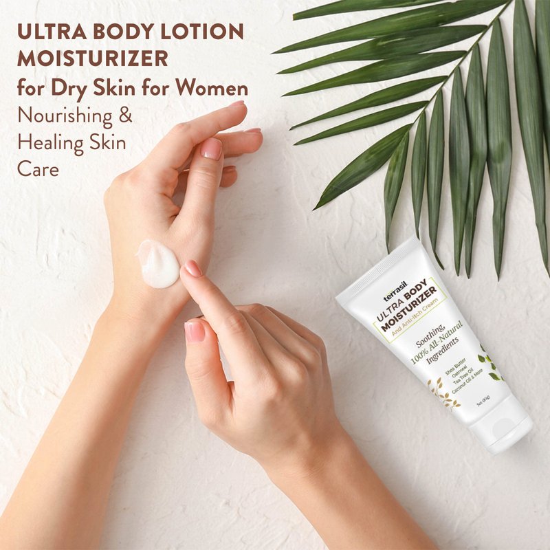 - BODY LOTION FOR DRY SKIN Terrasil’s ultra-healing body cream for dry skin fully moisturizes your hands, legs, feet and face and protects it from chafing and cracking. Ideal as a face moisturizer, Ultra Body Cream soothes, hydrates and rejuvenates dry or sensitive skin.