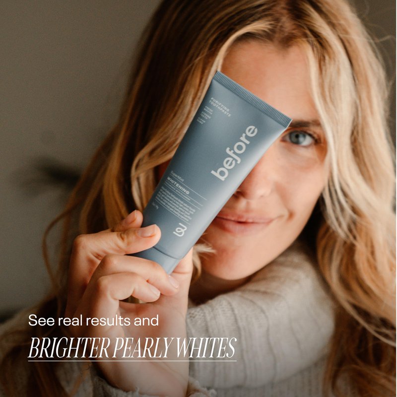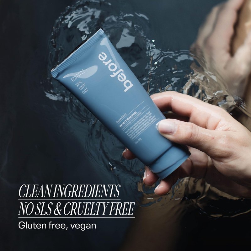 Our toothpaste uses a custom blend of high quality clean ingredients with sodium fluoride to help fight cavities, remineralize tooth enamel and promote optimal mouth health. Before Whitening gently whitens teeth using clean ingredients and no harmful chemicals. We use aloe extract to sooth your gums and antioxidants to boost the immune system.