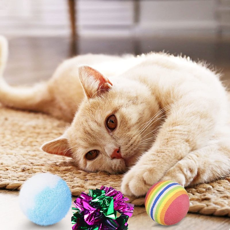 - Safe Material: cat balls toys made of environment-friendly materials, safte and comfortable for cats. Size: The balls size are 3.5cm - 5cm.