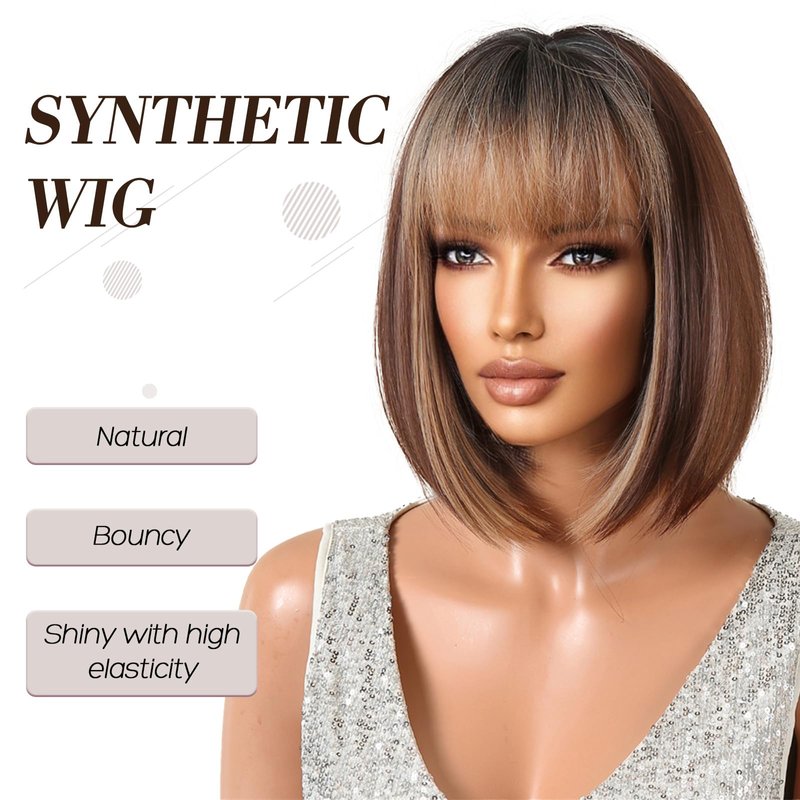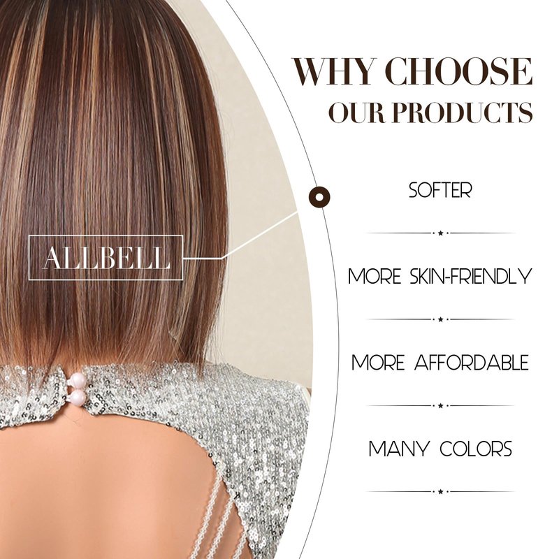 Allbell Bob Wigs for Black Women Short Brown Bob Wig with Blonde Bangs and Highlight Natural Looking Synthetic Wig for Daily Use