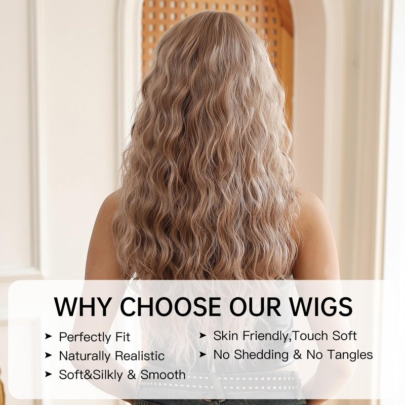 - 【Thoughtful, Comfortable and Secure Fit】Comfortable and ventilated wig net, made of high-quality, truly skin-friendly materials, thoughtful interior design, extra elastic bands inside the wig net, tested and optimized hair volume design, all of which Give you a safe and comfortable wearing experience with this 26-inch long wavy wig.