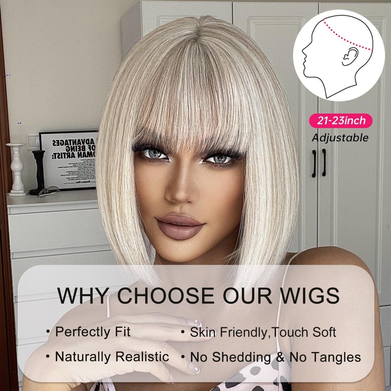 - 【Superiority】White Blonde Bob wigs suit for all occasions. This is the best choice for daily use, wedding, parties, dating, Halloween costumes, and so on.The magic place for wigs are that it makes you more distinctive like makeup, and you deserve to have it.