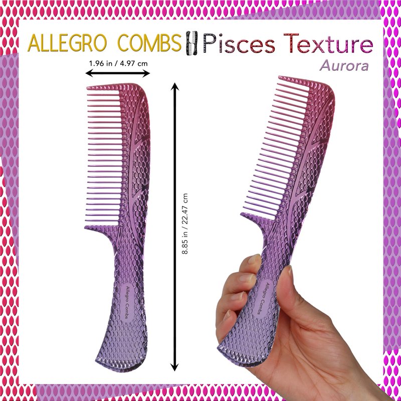 Allegro Comb 1004 Wide Tooth Detangling Hair Combs For Women, Stylists & Curly Hair Teasing Comb Mens Comb 1 Piece. (Pink Purple Aurora)