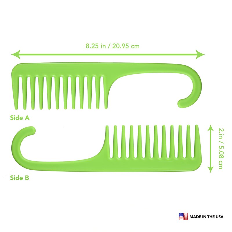 Allegro Combs #1002 Wide Tooth Comb Shower Comb With Hook For Curly Hair Wet Or Dry Detangle Women’s Combs Made In The Usa 1 Pc. (Green)