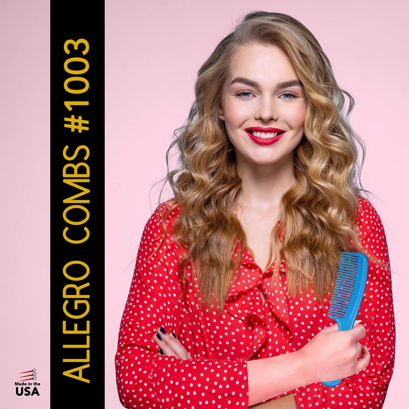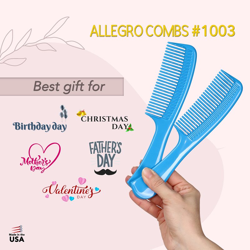 - Made in the USA for multiple applications: Allegro Combs #1003 tangle tamer with handle great wide tooth comb for curly hair for wet or dry hair, thick hair, curly hair, children's hair. The detangle combs with standout colors works great for all hair types, handle for better gripping nicely in shower curly hair detangler.