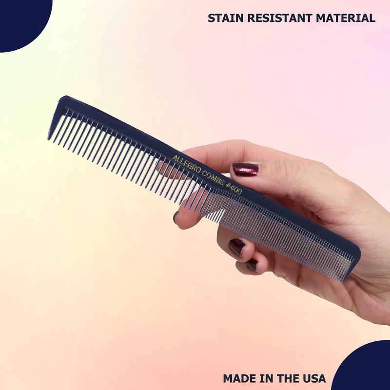 Allegro Combs 400 set of combs with a total of 6 hair combs. Having one of these combs is like having two combs in one, since they feature wide tooth comb on one half and fine tooth comb on the other half. Barber comb and styler comb. Allegro Combs 400 are designed with the selective hair professionals in mind and made exclusively for many hair styling needs. Made of nitrile rubber. 100% professional quality for combining proper rigidity and flexibility and they will not brake since they are not made of plastic. Perfect for all types of hair, like: curly hair, thin hair, thick hair, boy hair, natural hair and fake hair and more. Also, everyone can used them, these combs are great combs for woman, combs for men, thin hair, thick hair, curly hair and straight hair. Rounded teeth combs, can be wet or dry sterilized. With perfectly matched teeth to eliminate drag, split ends or scratching your scalp. These comb for women are suitable for all types of hair, they are the perfect men's hair combs. Professionals approved. Perfect travel combs since they are light weight and only 7 inches long.