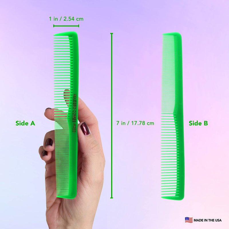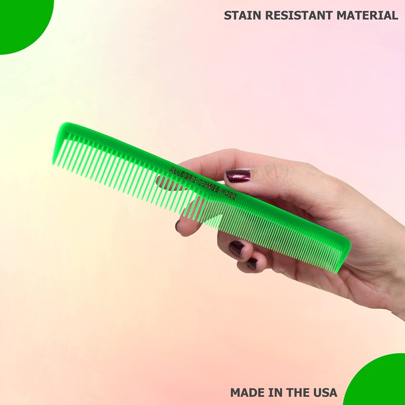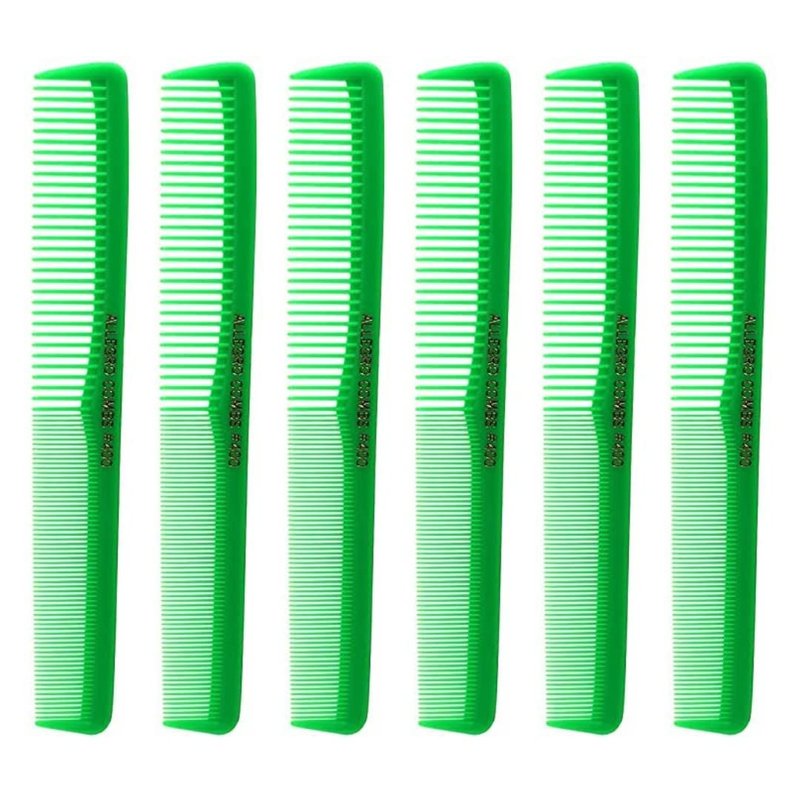 Allegro Combs 400 set of combs with a total of 6 hair combs. Having one of these combs is like having two combs in one, since they feature wide tooth comb on one half and fine tooth comb on the other half. Barber comb and styler comb. Allegro Combs 400 are designed with the selective hair professionals in mind and made exclusively for many hair styling needs. Made of nitrile rubber. 100% professional quality for combining proper rigidity and flexibility and they will not brake since they are not made of plastic. Perfect for all types of hair, like: curly hair, thin hair, thick hair, boy hair, natural hair and fake hair and more. Also, everyone can used them, these combs are great combs for woman, combs for men, thin hair, thick hair, curly hair and straight hair. Rounded teeth combs, can be wet or dry sterilized. With perfectly matched teeth to eliminate drag, split ends or scratching your scalp. These comb for women are suitable for all types of hair, they are the perfect men's hair combs. Professionals approved. Perfect travel combs since they are light weight and only 7 inches long.