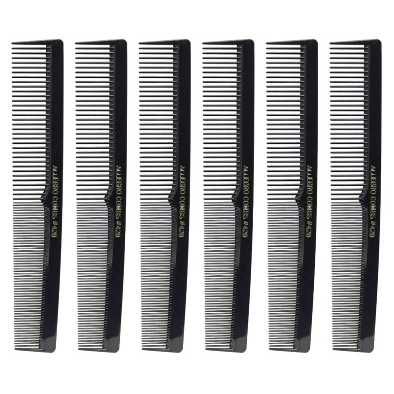 Allegro Combs 420 Cutting Combs Hair Stylist Barbers Combs Beard Comb Mustache Mens Women Toddler Boys Braiding Hair Parting USA 6 Piece (Black)