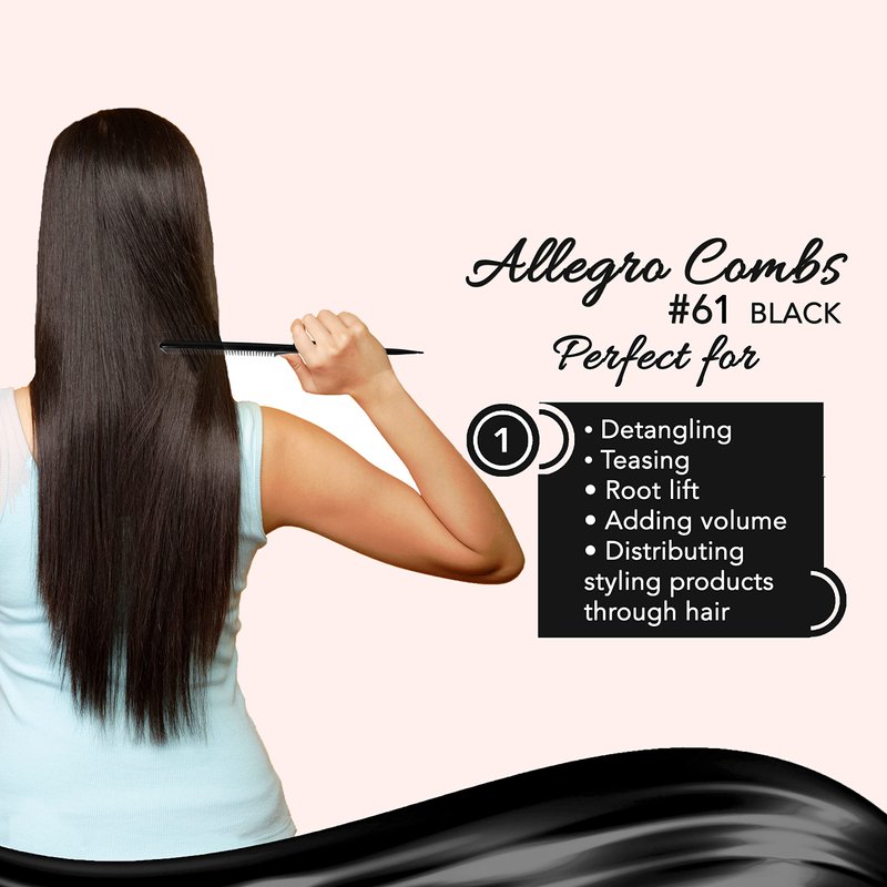 - ALLEGRO COMBS 61 EXTRA LARGE RAT TAIL COMBS - this rattail model is perfect for a professional hair stylist combs, with the best quality materials it will keep their original color and texture through the time, no matter how frequently you use them. They are disinfectable with any method used by professional and reusable.