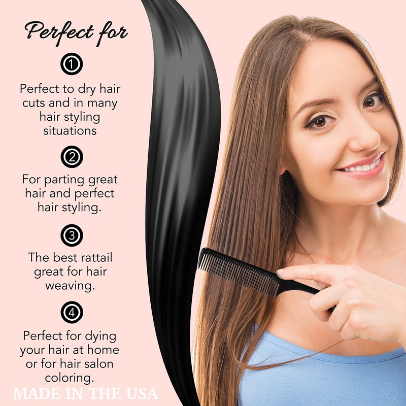 - WITH STANDOUT COLORS PERFECT GIFT MADE IN THE USA: - standout colors that is easy to locate and also makes a perfect gift for women. Uniquely perfect detangling comb, good hand feel, smooth use, is your best choice as a gift. rat tail combs for hair stylist. rat tail combs for parting.