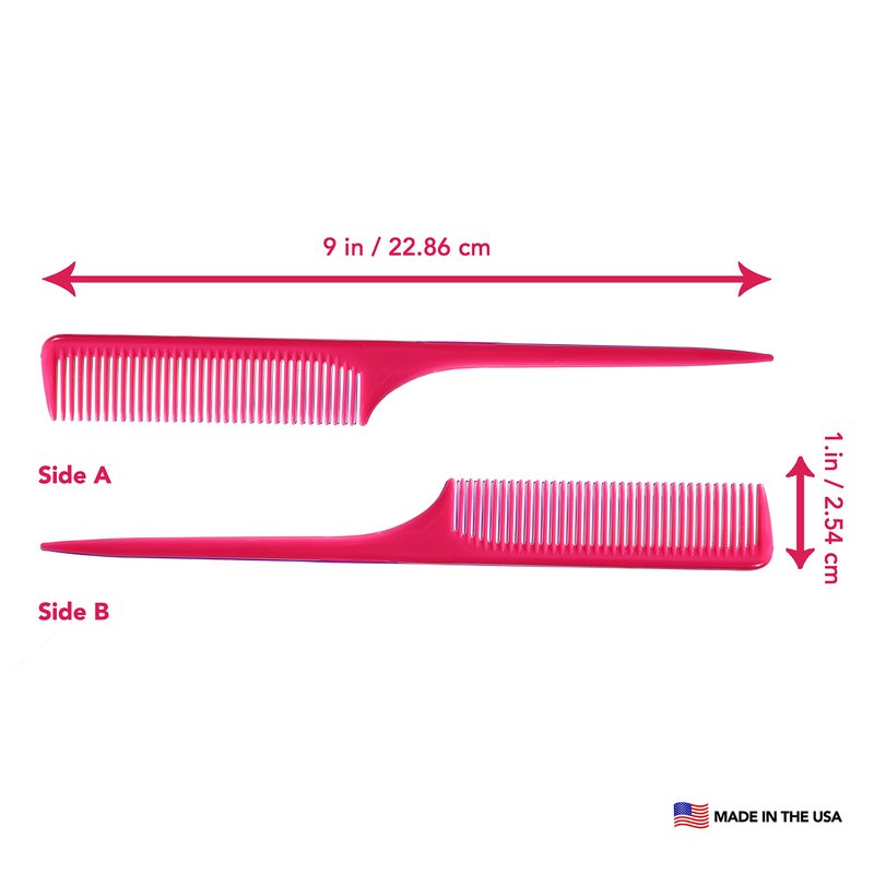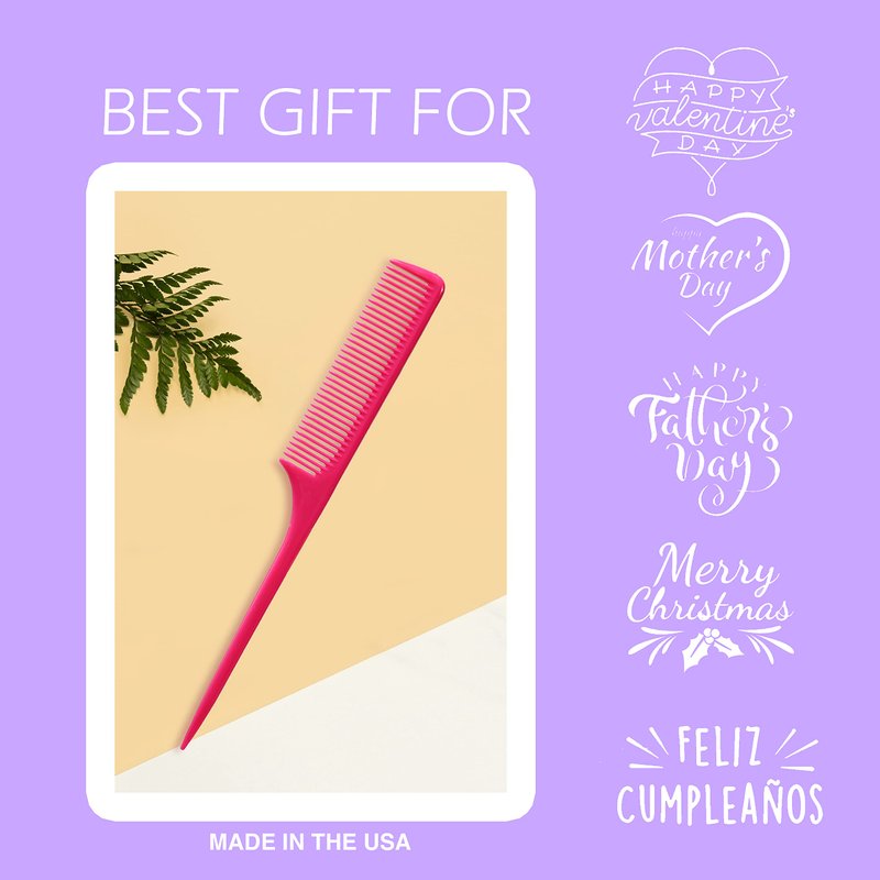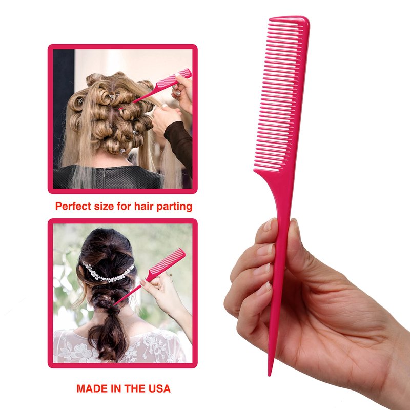 - WITH STANDOUT COLORS PERFECT GIFT MADE IN THE USA: - standout colors that is easy to locate and also makes a perfect gift for women. Uniquely perfect detangling comb, good hand feel, smooth use, is your best choice as a gift. rat tail combs for hair stylist. rat tail combs for parting.