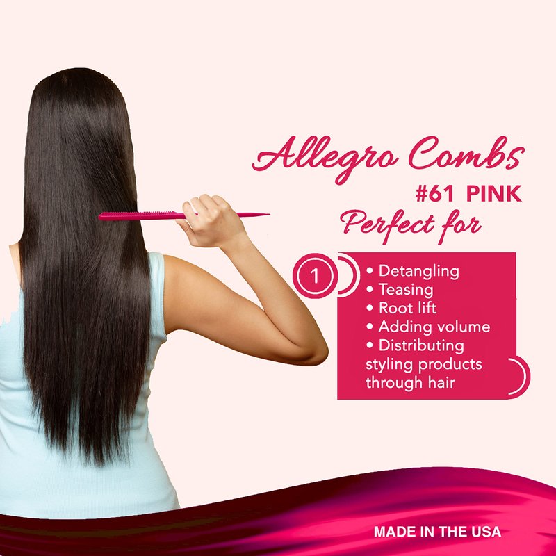 - ALLEGRO COMBS 61 EXTRA LARGE RAT TAIL COMBS - this rattail model is perfect for a professional hair stylist combs, with the best quality materials it will keep their original color and texture through the time, no matter how frequently you use them. They are disinfectable with any method used by professional and reusable.