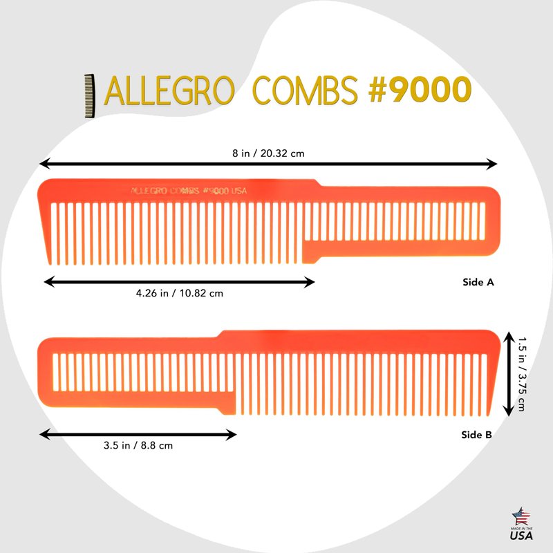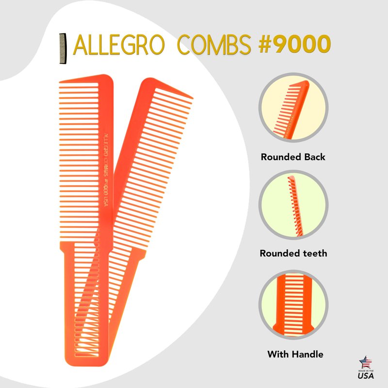 Allegro Combs 9000 Clipper Blending Cutting Wide Teeth Hair Comb For Fading Barbers Hairstylist Men Women Shower Comb Shampoo Styling 1 Piece (Neon Orange)