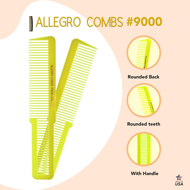 Allegro Combs 9000 Clipper Blending Cutting Wide Teeth Hair Comb For Fading Barbers Hairstylist Men Women Shower Comb Shampoo Styling 2 Piece (Neon Yellow)