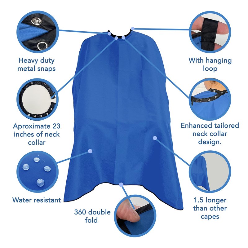 Allegro Combs Hair Cutting Cape Haircut Barber Apron Hair Stylist For Men Hair Cape Kids Cutting Adjustable Water Resistant One-Size-Fits-All 46 X 60 In. 1 Pc. (Blue)