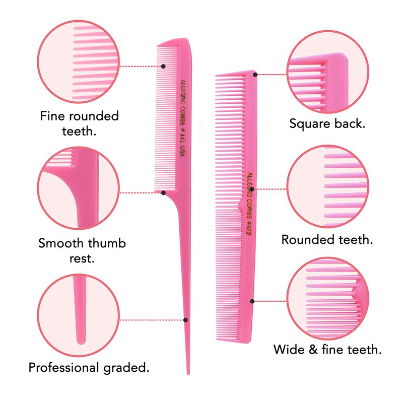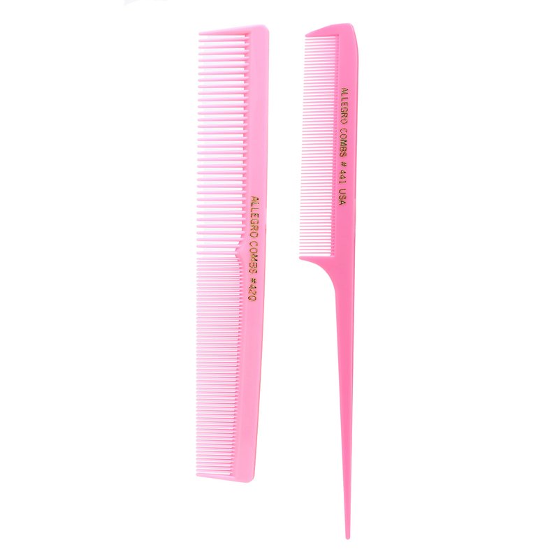 Allegro Combs Rat Rail And Barber Comb Stylist Combs Set Rattail Styling Parting Comb Hair Stylist Tail Comb Men Combs Women Combs Kids Comb Fresh Color 2 Pc. (Fresh Pink)