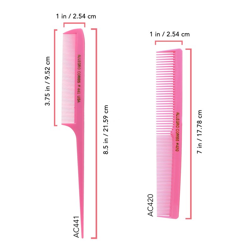 - Hair comb set for barbers and hair stylists teasing, Stitch braids comb with fine and wide teeth, multicolor sets, One set per order. You will receive one 7-inch length and one Rattail 8.5 inches in length. All Allegro Combs come in a variety of trending colors to suit your personal style. The selection of these bright beauties will have the potential customer considering what an excellent addition this would be to their hair cutting and styling kit and which color should spark the most appeal.