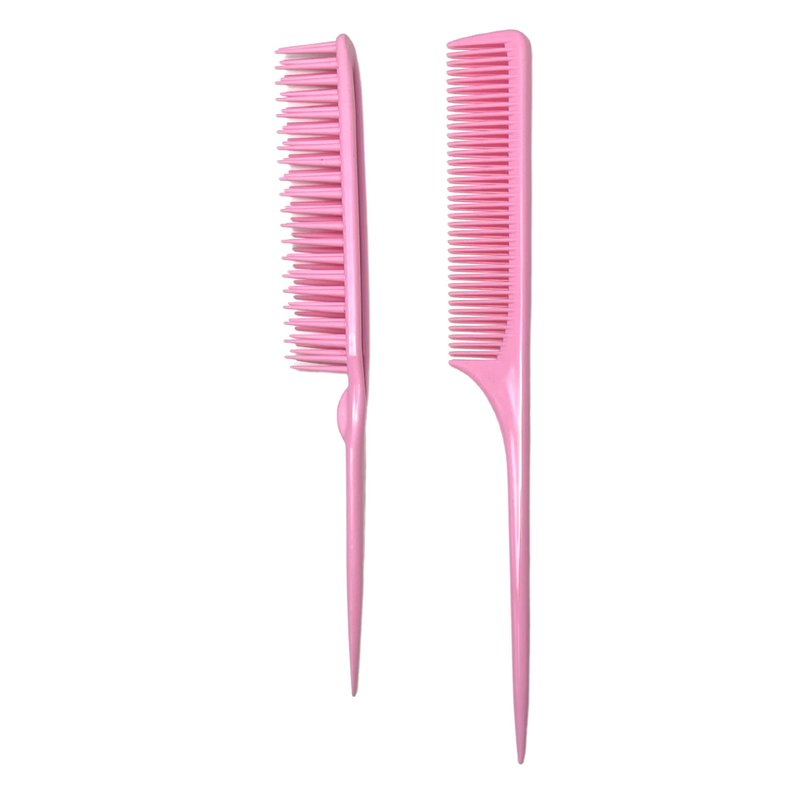 Allegro Combs Rat Tail And Three Row Combs For Women Parting Hairstylist Wide Tooth Comb Detangling Hair Styling Apply Product In Curly Hair Made In The USA 2 Pcs. (Light Pink)