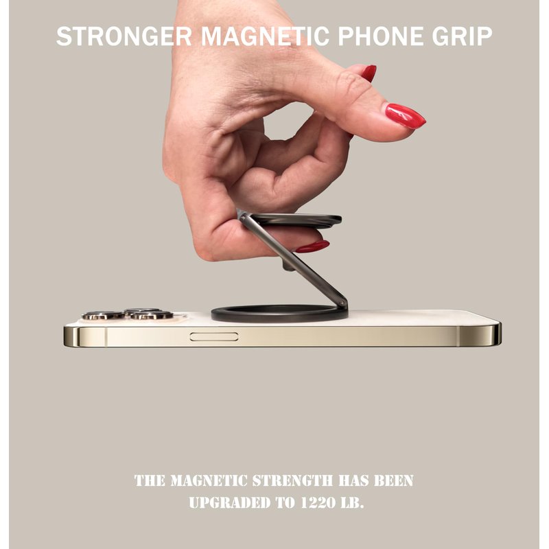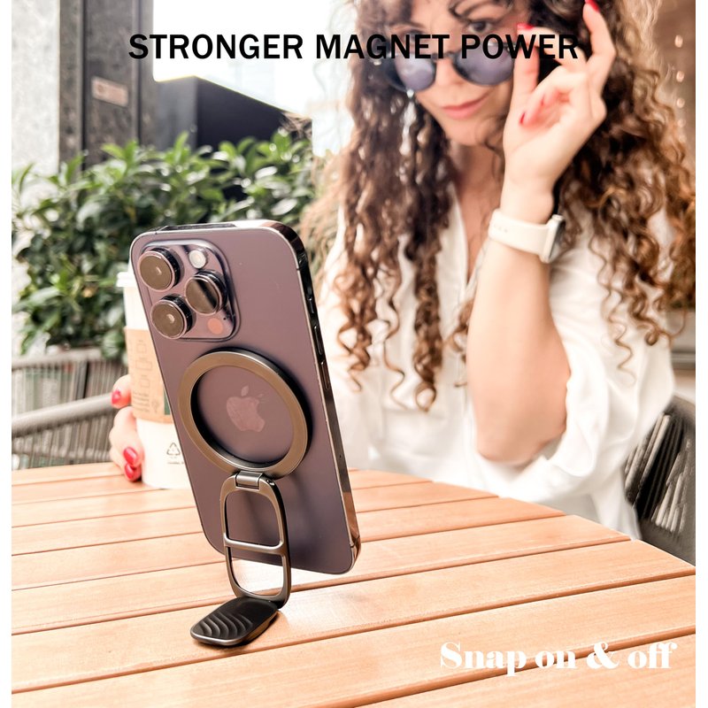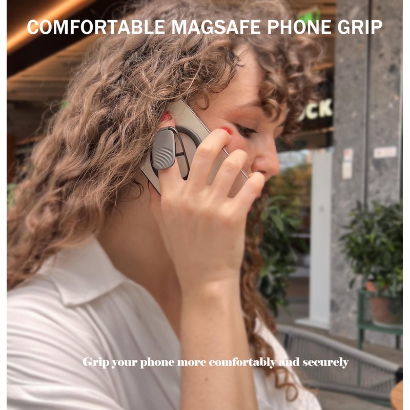 The Allengel for MagSafe Ring Holder is a versatile and convenient accessory for your iPhone. This double magnetic adjustable phone stand features a finger ring grip and kickstand, making it compatible with the MagSafe Phone Grip for iPhone 15/14/13/12 Series. The ring holder allows you to securely grip your phone with one hand, reducing the risk of drops and providing a comfortable viewing experience. The adjustable kickstand lets you prop up your device at various angles, perfect for video calls, movie watching, or hands-free browsing. Crafted with durable materials, this ring holder offers a secure magnetic attachment to your MagSafe-compatible iPhone. Easily detachable and portable, it's an essential companion for on-the-go convenience and enhanced functionality.