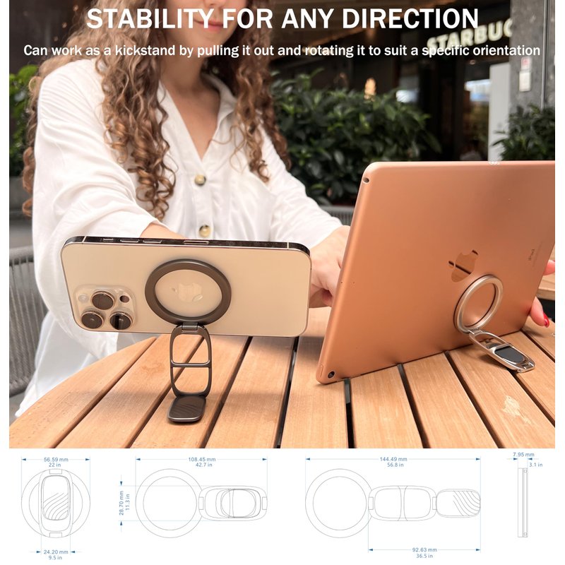 - Multifunctional Magnetic Design: Dual-sided magnets allow secure attachment to MagSafe devices, car mounts, and metal surfaces for handsfree usage like watching videos, taking selfies or as a kickstand.