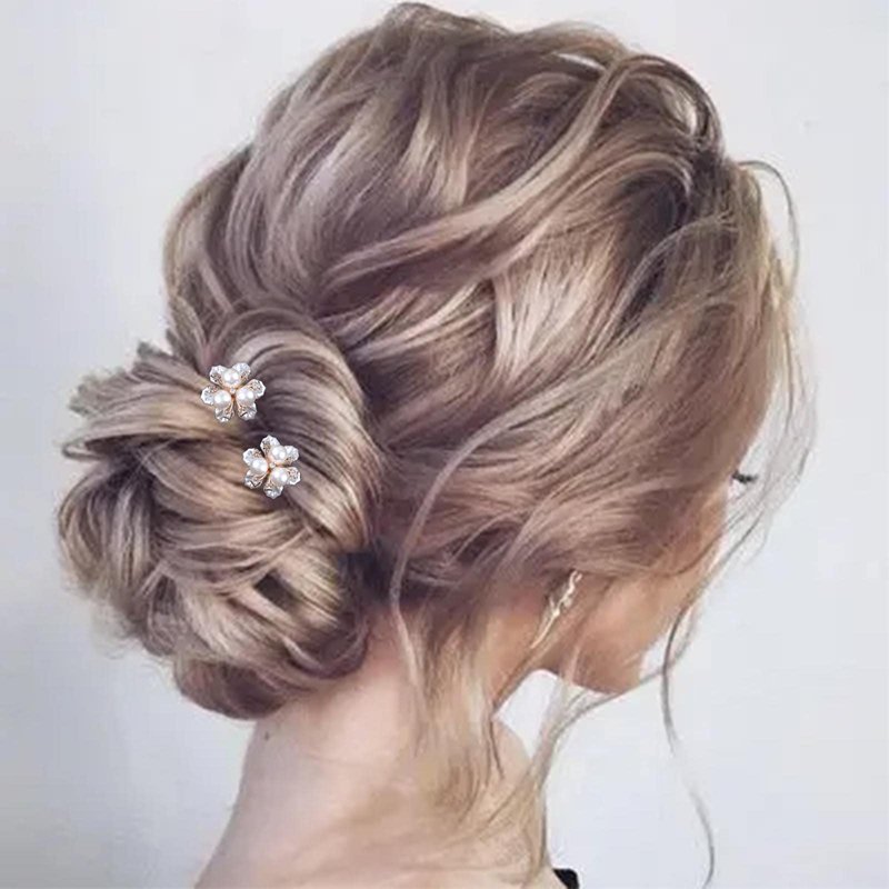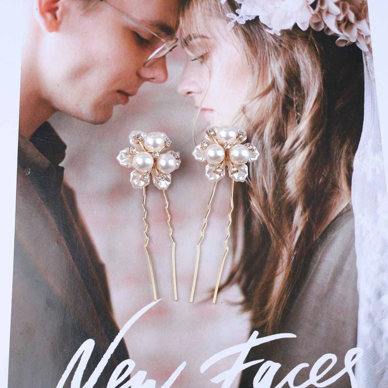 Allereyae Crystal Pearl Wedding Hairpins Barrette Rhinestone Pearl Flower Hair Pins Barrette Gold CZ Pearl Bling Bridal Headpieces Head Clip Headwear Bridal Hair Accessories 2Pcs