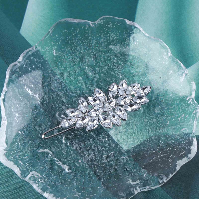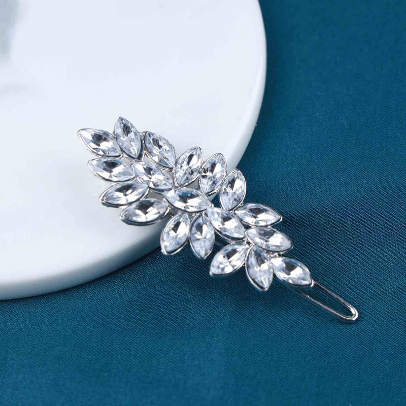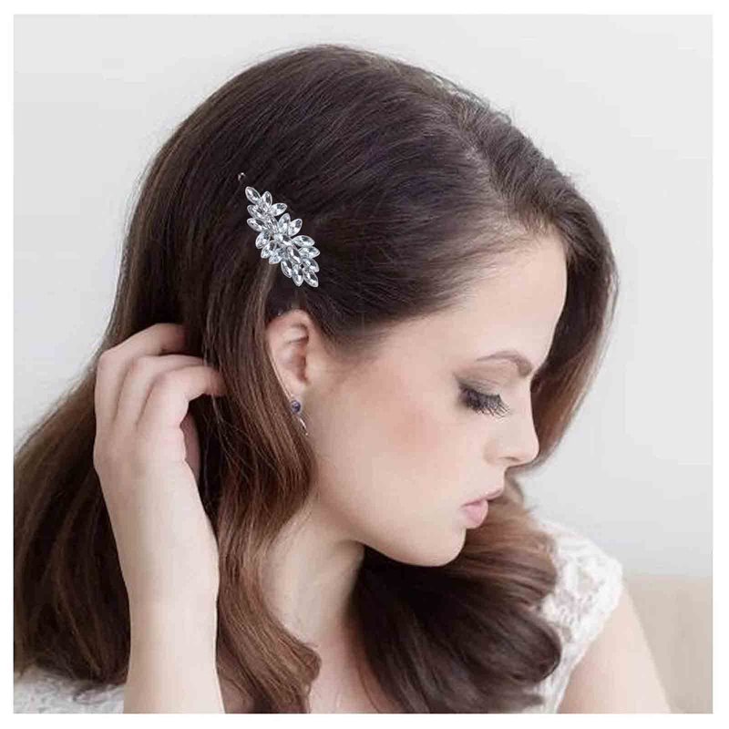 Allereyae Rhinestone Leaf Hair Clip Pins Barrette Crystal Wedding Hairpins Barrette Silver CZ Bling Bridal Headpieces Decorative Head Clip Headwear Bridal Hair Accessories
