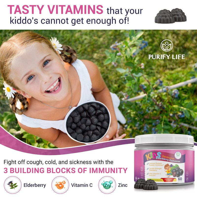 - [Low-Sugar, High-Protection] – Purify Life kept the sugar low to respect your child's dietary needs while still ensuring a great taste. Each serving of our elderberry gummies supports your child's defense system for a full 60 days, allowing your family to savor the fall/winter season together, free from worry about common cold symptoms.
